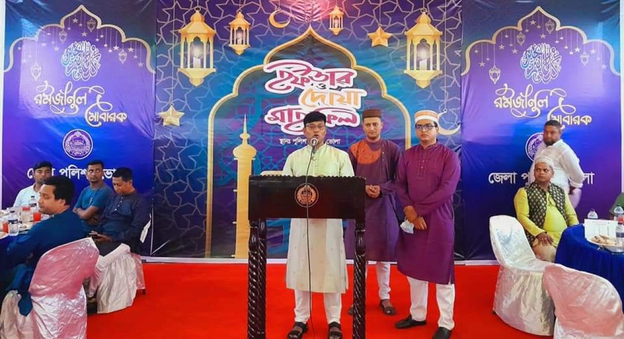অচিন্ত্য মজুমদার II ভোলায় পবিত্র মাহে রমজান উপলক্ষে জেলা পুলিশের উদ্যোগে দোয়া ও ইফতার মাহফিল অনুষ্ঠিত হয়েছে। শনিবার সন্ধ্যায় শহরের পুলিশ লাইন্স ড্রিলশেডে আয়োজিত ওই দোয়া ও ইফতার মাহফিলে সভাপতিত্ব করেন পুলিশ সুপার মোঃ সাইফুল ইসলাম (বিপিএম পিপিএম)। এসময় অন্যান্যদের মধ্যে উপস্থিত ছিলেন ভোলা জেলা প্রশাসক তৌফিক-ই-লাহী চৌধুরী, ভোলা জেলা ও দায়রা জজ মোঃ মহাসিনুল হক, কোস্টগার্ড জোনাল কমান্ডার মোঃ সাহেদ ছাত্তার, জেলা আওয়ামী লীগের সভাপতি ফজলুল কাদের মজনু মোল্লা, সাধারণ স¤পাদক আব্দুল মমিন টুলু, প্রেসক্লাব সভাপতি এম হাবিবুর রহমান,আওয়ামী লীগের উপদেষ্টা মÐলীর অন্যতম সদস্য সাবেক বাণিজ্যমন্ত্রী ও ভোলা-১ আসনের সংসদ সদস্য তোফায়েল আহমেদের কন্যা বিশিষ্ট চিকিৎসক ডা: তাসলিমা আহমেদ মুন্নি, ভোলা পুনাক সভানেত্রী নূর জাহান ইসলাম, জেলা মুক্তিযোদ্ধা সংসদের সাবেক ডেপুটি কমান্ডার মোঃ শফিকুল ইসলাম, সাধারণ স¤পাদক অমিতাভ অপ, জেলা আওয়ামী লীগের যুগ্ন সম্পাদক এনামুল হক আরজুসহ ভোলা জেলার বিভিন্ন সরকারি-বেসরকারি কর্মকর্তাবৃন্দ, রাজনৈতিক ব্যক্তিবর্গ, আলেম-ওলামাগণ, প্রিন্ট ও ইলেকট্রনিক মিডিয়ার সাংবাদিকবৃন্দ উপস্থিত ছিলেন। এসময় অভ্যাগত অতিথিবৃন্দের উদ্দেশ্যে শুভেচ্ছা বক্তব্যে পুলিশ সুপার মোঃ সাইফুল ইসলাম বলেন, করোনা মহামারীর কারনে আমরা দীর্ঘদিন একত্রীত হতে পারিনি। আজকের ইফতারের আয়োজনের মাধ্যমে সবাই একত্রিত হতে পেরেছি। ইফতারের পুর্ব মূহুর্তে দোয়া কবুল হয়।তাই আমরা সবাই সবার জন্য দোয়া করবো। পরিশেষে সকলের সুস্বাস্থ্য কামনা করেন তিনি। দোয়া ও ইফতার মাহফিলে পবিত্র কোরআন তেলওয়াতের মধ্যদিয়ে দেশের সকল মানুষের মঙ্গল কামনায় দোয়া ও মোনাজাত করা হয়।
