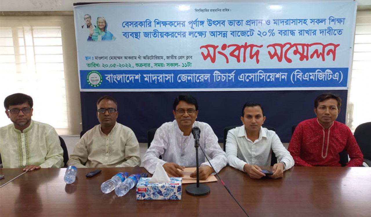 মাদ্রাসাসহ সব শিক্ষা ব্যবস্থা জাতীয়করণের লক্ষ্যে আসন্ন বাজেটে শিক্ষা খাতে মোট বাজেটের ২০ শতাংশ বরাদ্দের দাবি জানিয়েছে বাংলাদেশ মাদ্রাসা জেনারেল টিচার্স অ্যাসোসিয়েশন (বিএমজিটিএ)।