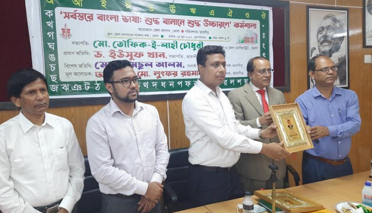 মাতৃভাষা বাংলার শুদ্ধ ব্যবহার নিশ্চিত করার লক্ষে ভোলায় "সর্বস্তরে বাংলা ভাষা ঃ শুদ্ধ বানানে শুদ্ধ উচ্চারণে " শীর্ষক কর্মশালা অনুষ্ঠিত হয়েছে। বৃহস্পতিবার ভোলা জেলা প্রশাসক কার্যালয়ের বঙ্গবন্ধু ও মুক্তিযুদ্ধ কর্নারে অনুষ্ঠিত কর্মশালায় প্রধান অতিথি ছিলেন ড. ইউসুফ খান। অতিরিক্ত জেলা প্রশাসক (রাজস্ব) মামুন আল ফার¤œক এর সভাপতিত্বে কর্মশালায় বিভিন্ন শিক্ষা প্রতিষ্ঠানের শিক্ষকবৃন্দ অংশ নিয়েছেন। ছায়ানীড় নামের একটি স্বেচ্ছাসেবী সংগঠন এই কর্মশালার আয়োজন করছে।