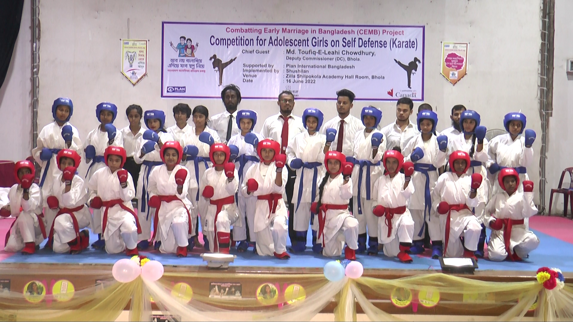 “ আর নয় বাল্য বিয়ে এগিয়ে যাবো স্বপ্ন নিয়ে’’ এই ¯েøাগানকে সামনে রেখে উপকূলীয় জেলা ভোলার কিশোরীদের আত্মবিশ্বাস বাড়াতে ৩ দিন ব্যাপী কারাতে প্রতিযোগিতা অনুষ্ঠিত হয়। বৃহস্পতিবার সমাপনী দিনে ভোলার শিল্পকলা একাডেমী ফাইনার রাউন্ডে ৩ টি উপজেলার ৪০ জন কিশোরী ১০ টি ইভেন্টে এতে অংশ নেয়। এর মাধ্যমে কিশোরীরা আত্মরক্ষার জন্য কৌশল শিখার মাধ্যমে শারিরিক ও মানসিক দৃড়তাতা অর্জন করতে সক্ষম হয়েছে।