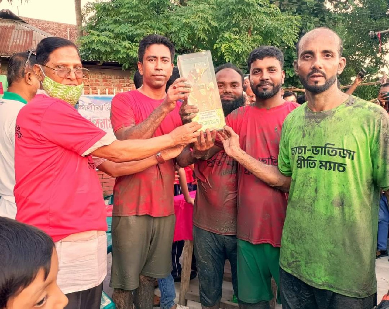 বাংলার কণ্ঠ প্রতিবেদক : ভোলার পৌর টাউন স্কুল মাঠে অনুষ্ঠিত হয়েছে চাচা-ভাতিজা ফুটবল টুর্নামেন্ট। ঈদ উপলক্ষে অনুষ্ঠিত এ টুর্নামেন্টের ফাইনালে সোমবার বিকালে ট্রাইব্রেকারে ৩-২ গোলে বিজয়ী হয়েছে ভাতিজা টিম। বিজয়ীদের মধ্যে পুরস্কার তুলে দেন পৌর প্যানেল মেয়র মোঃ সালাউদ্দিন লিংকন। এ সময় এলাকার গন্যমান্য ব্যক্তিদের মধ্যে উপস্থিত ছিলেন ইমারিত শ্রমিক ফেডারেশনের সভাপতি রবিউল আলম, প্রেসক্লাব সম্পাদক অমিতাভ অপু, ব্যবসায়ী সরোয়ার ইসলাম, ব্যবসায়ী আক্তার ফারুক বাচ্চু । ৭১ টিভি প্রতিনিধি মোঃ কামরুল ইসলাম ছিলেন চাচা টিমের অধিনায়ক। অপরদিকে ভাতিজা টিমের অধিনায়ক ছিলেন, দুরন্ত। সন্তানদের উৎসাহ দিতে মাঠে ছুটে আসেন মায়েরা।