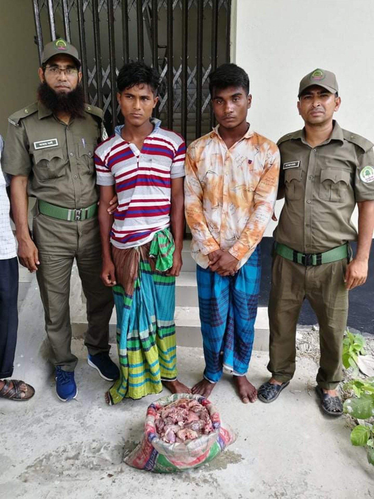 পঁচা কোড়ালিয়া বনবিভাগের বিটকর্মকর্তা মোঃ আব্বাস আলী জানান, গোপন সংবাদের ভিত্তিতে বৃহস্পতিবার রাত ১ টায় মনপুরা উপজেলার দক্ষিণ সাকুচিয়া ইউনিয়নের চরপিয়ালের সংরক্ষিত বনাঞ্চলে তার নেতৃত্বে অভিযান চালানো হয়। এ সময় জবাইকৃত ৮ কেজি হরিণের মাংসসহ দুই হরিণ শিকারিকে আটক করা হয়। আটককৃতরা হলেন, মোঃআরিফ ও মোঃ শাকিল। এদের বাড়ি উপজেলার ২নং হাজির হাট ইউনিয়নের ৬নং ওয়ার্ডে দাসের হাট গ্রামে। পরে আটককৃতদের মনপুরা বন বিভাগের রেঞ্জ অফিসে এনে মামলা দেওয়া হয়।