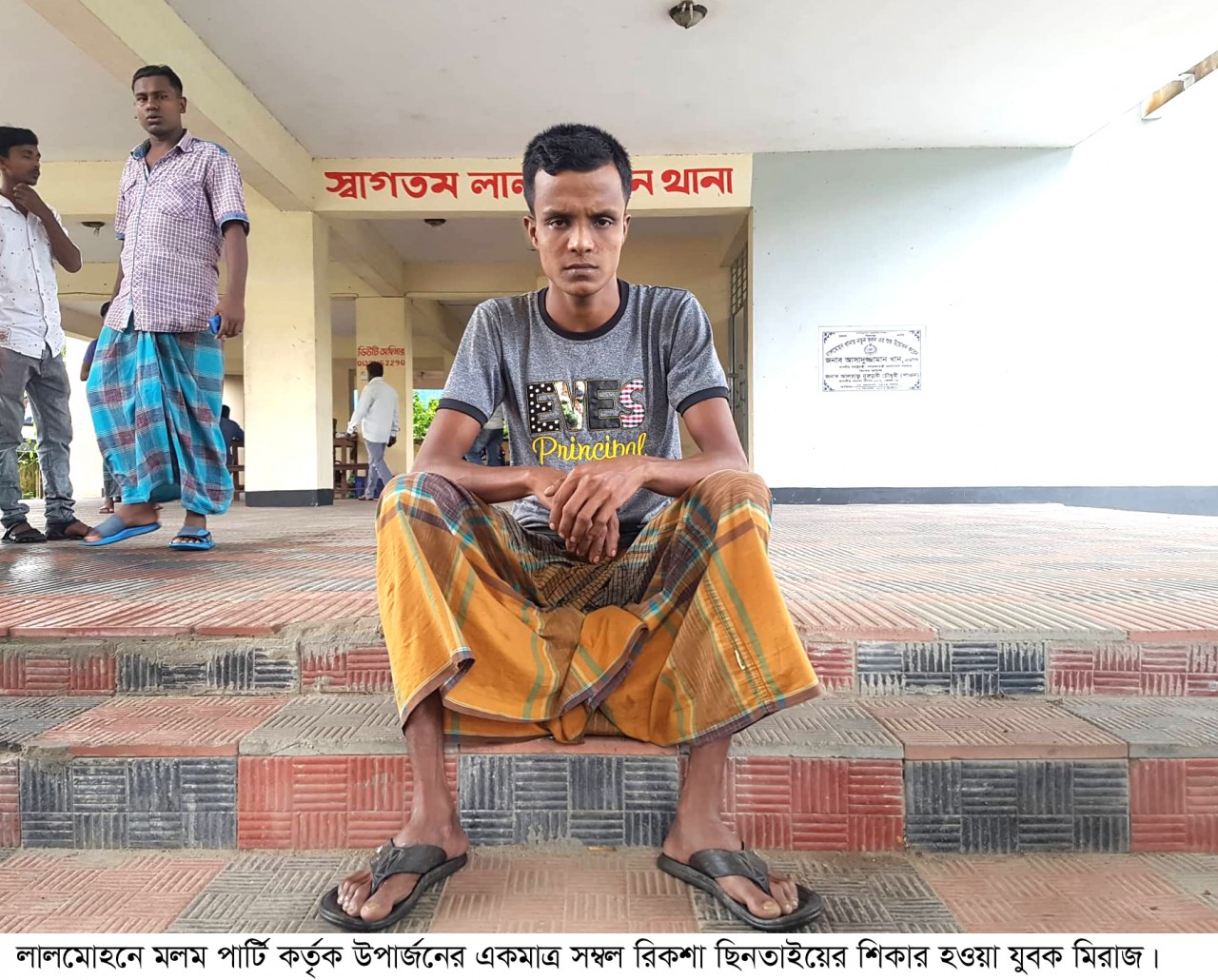 দেখা যায়, রিকশা ফিরে পাওয়ার আশায় বাকরুদ্ধ হয়ে বৃহস্পতিবার বিকালে থানা প্রাঙ্গনে বসে রয়েছেন মিরাজ নামের ওই রিকশা চালক। যেন তার সর্বস্ব হারিয়েছে। কোনো কথাই বের হচ্ছে না মুখ দিয়ে। অনেক চেষ্টার পর কথা বলেন মিরাজ। তিনি জানান, পরিবারে বাবা-মাসহ আমরা ৫ সদস্য রয়েছি। বড় ভাই বিয়ে করে এখন আর আমাদের খোঁজ নেন না। আমার সেই ১৭ বছর বয়স থেকে রিকশা চালিয়ে সংসারের হাল ধরি। অনেক বছর ভাড়ায় চালালেও গত দুই মাস আগে এনজিও থেকে ঋণ নিয়ে একটি রিকসা কিনি। সেই রিকশা নিয়ে গেছে মলম পার্টি। এখন পরিবার-পরিজন নিয়ে কি করে চলবো আর ঋণের টাকাই বা কিভাবে শোধ করবো, কিছুই ভেবে পাচ্ছি না। রিকশা ফিরে পেতে থানায় অভিযোগ করেছি। যার জন্য এখন থানায় এসে বসে আছি।