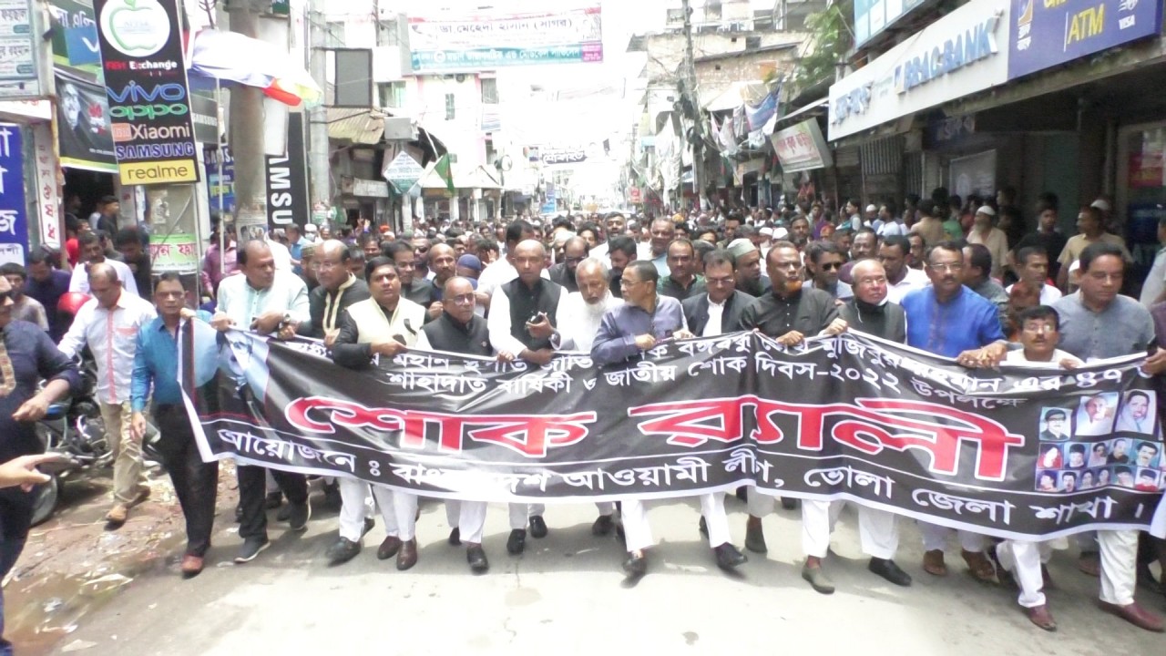 ভোলা জেলা আওয়ামী লীগের সভাপতি ফজলুল কাদের মজনুর সভাপতিত্বে আলোচনা সভায় আরো বক্তব্য রাখেন, জেলা আওয়ামী লীগ সিনিয়র সহ-সভাপতি আবদুল মমিন টুলু, জেলা আওয়ামী লীগের সাধারণ সম্পাদক মইনুল হোসেন বিপ্লব, সাবেক যুগ্ন সাধারণ সম্পাদক জহুরুল ইসলাম নকিব, সদর উপজেলা আওয়ামীলীগের সাধারণ সম্পাদক নজরুল ইসলাম প্রমুখ। আলোচনা শেষে দোয়া মোনাজাত অনুষ্ঠিত হয়। এর আগে সকালে জেলা আওয়ামী লীগ কার্যালয়ের সামনে দলীয় পতাকা উত্তোলন করা হয়। এর পর বঙ্গবন্ধুর প্রতিকৃতিতে ফুল দিয়ে নেতৃবৃন্দ শ্রদ্ধা জানান ও কালো ব্যাজ ধারন করা হয়। পরে জেলা আওয়ামী লীগের আয়োজনে দলীয় নেতাকর্মীদের বিশাল একটি শোক র্যালী শহরের প্রধান প্রধান সড়ক প্রদক্ষিণ করে। র্যালী শেষে অসহায় দুস্থসহ সাধারণ মানুষের মধ্যে খাবার বিতরণ করা হয়।