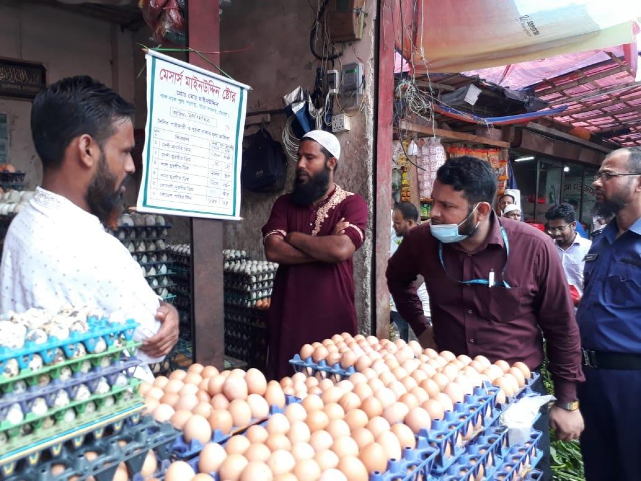 অভিযানে ডিমের মূল্য তালিকা ও ক্রয় ভাউচার না থাকা এবং মূল্যে কারসাজির অপরাধে মোস্তফা ডিম ঘরকে ১ হাজার টাকা, মাইনুদ্দিন স্টোরকে ৫ হাজার, আড়িয়ান এগ সপকে ১ হাজার ও সওদাগর এন্টারপ্রাইজকে ৩ হাজার টাকা জরিমানা করা হয়। এছাড়া জ¦ালানী তেল মাপার যন্ত্রে কারচুপির প্রমাণ পাওয়ায় সাব্বির ট্রের্ডাসকে ১০ হাজার ও বৈদ্য মিডিয়াকে ১০ হাজার টাকা জরিমানা করা হয়।