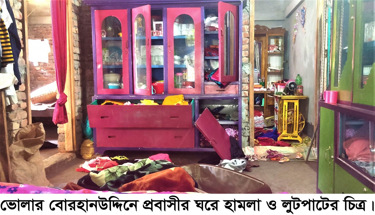 বোরহানউদ্দিন প্রতিনিধি : ভোলার বোরহানউদ্দিন উপজেলার কুতুবা ইউনিয়েরর ৬ নাম্বার ওয়াডের্র মোসলেউদ্দিন নামের এক প্রবাসীর ঘরে হামলা ও লুটপাটের ঘটনার অভিযোগ পাওয়া গেছে। একই ওয়ার্ডের মৃত শফিজল হকের ছেলে মো. নুরুউদ্দিন ও মো. সোহাগ গং ওই ঘটনা ঘটিয়েছে বলে ওমান প্রবাসী মোসলেউদ্দিন ও তাঁর বাবা আবুল কালাম অভিযোগ করেন।