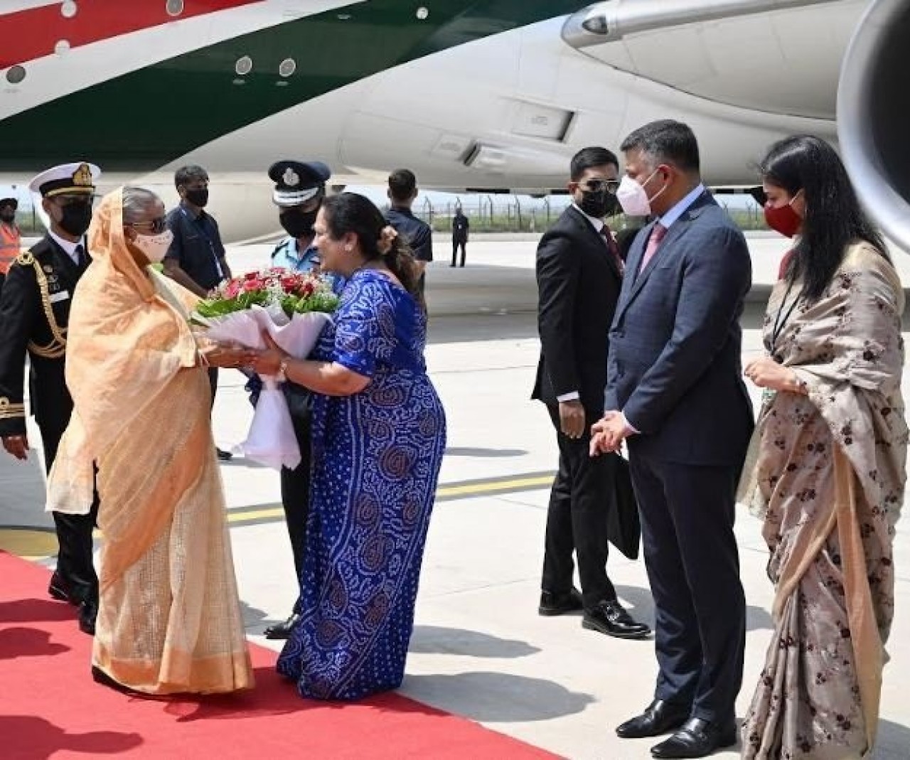 সেখানে বাংলাদেশের প্রধানমন্ত্রীকে ভারতের রেল ও বস্ত্র প্রতিমন্ত্রী দর্শনা বিক্রম এবং ভারতে বাংলাদেশের হাইকমিশনার মুহাম্মদ ইমরান অভ্যর্থনা জানান।
