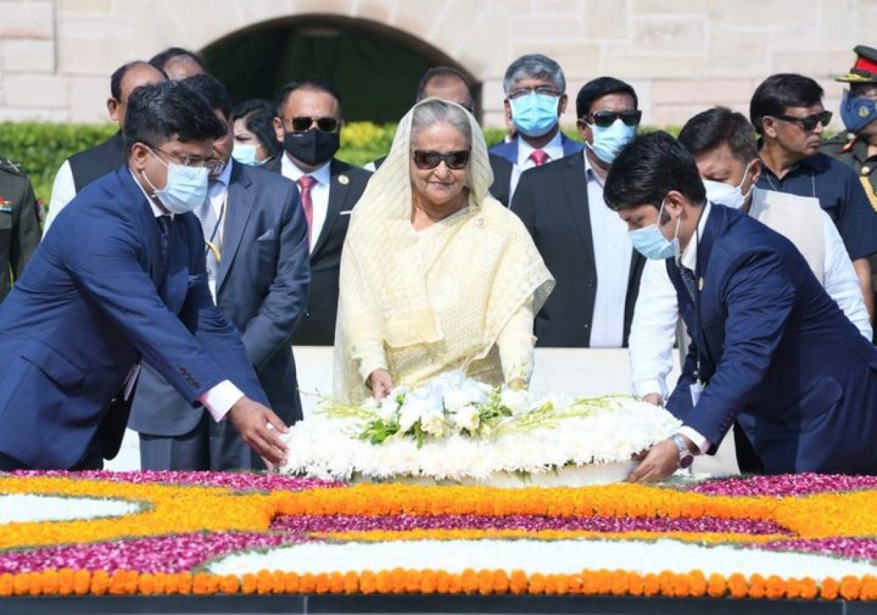 ভারতের জাতির পিতার স্মৃতিসৌধে রাখা দর্শনার্থী বইয়েও স্বাক্ষর করেন তিনি। এ সময় বাংলাদেশের প্রধানমন্ত্রীকে একটি উপহার দেন স্মৃতিসৌধের সচিব।