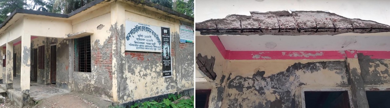 সরেজমিনে গিয়ে দেখা যায়, ১৯৯২ সালে নির্মিত এ ভবনটিতে ২০১৭ সালে ত্রুটি দেখা দেওয়ার পর ধীরে ধীরে শ্রেণি কক্ষগুলো জরাজীর্ণ হয়ে পড়েছে। প্রতিদিন ভবনের ছাদ ও দেয়ালের পলেস্তারা খসে পড়ছে। ভবনটির অধিকাংশ স্থানে ফাটল। শিক্ষক রুমে বিশাল ফাটল। পুরনো মরিচা ধরা রড বের হয়ে গেছে। আরসিসি পিলার, গ্রেট বিমগুলো ও বিভিন্ন কক্ষের ভেতরের দেয়ালে বিস্তৃত ফাটল ধরেছে। বৃষ্টি হলে ছাদ চুইয়ে পানি পড়ার কারণে দেওয়ালগুলো শ্যাওলা ধরে স্যাঁতসেঁতে হয়ে গেছে। ফলে সব সময় দুর্ঘটনার আতঙ্কে থাকেন শিক্ষক-শিক্ষার্থীরা। অবস্থা দিনদিন ভয়াবহ রূপ নিচ্ছে। বিকল্প কোনো ব্যবস্থা না থাকায় বাধ্য হয়ে ঝুঁকিপূর্ণ ভবন জেনেও সেখানে ক্লাস নেওয়া হচ্ছে।