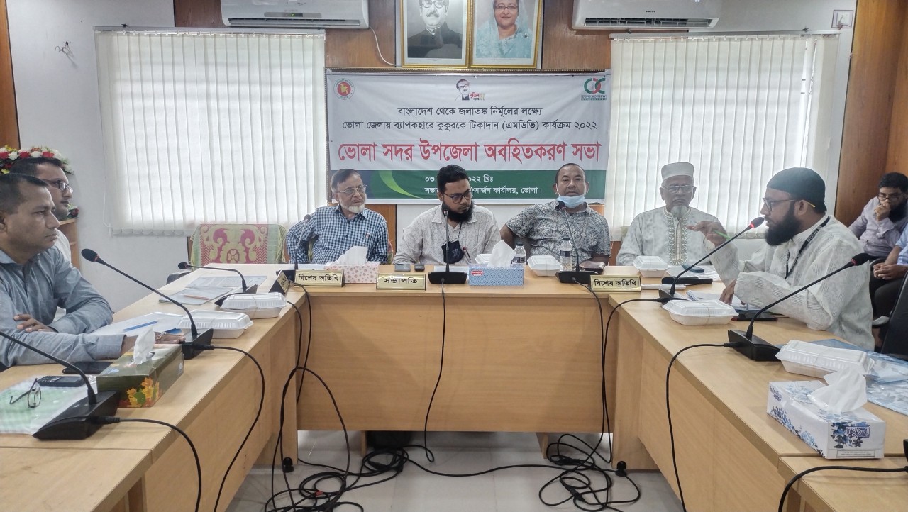 বাংলার কণ্ঠ প্রতিবেদক : বাংলাদেশ থেকে জলাতঙ্ক নির্মূলে লক্ষ্যে ভোলা জেলায় ব্যাপকহারে কুকুরকে টিকদানের লক্ষ্যে (এমডিভি) কার্যক্রমের অবহিতকরন সভা অনুষ্ঠিত।