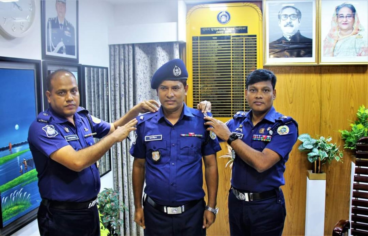 চরফ্যাশন প্রতিনিধি : পুলিশের দুই এসআইকে পদোন্নতি পাওয়ায় ইন্সপেক্টর র্যাংক ব্যাজ পড়িয়ে দিয়েছেন ভোলা পুলিশ সুপার মোহাম্মদ সাইফুল ইসলাম। বৃহস্পতিবার (৬অক্টোবর) বিকেলে ভোলা পুলিশ সুপার কার্যালয়ে চরফ্যাশন ও শশিভূষণ থানা পুলিশের উপ-পরিদর্শক (এসআই-নিরস্ত্র) জাহিদ হাসান এবং কমোলেশ দাশকে ইন্সপেক্টর (পুলিশ পরিদর্শক) এর র্যাংক ব্যাজ পড়িয়ে দেয়া হয়। এসময় উপস্থিত ছিলেন অতিরিক্ত পুলিশ সুপার আসাদুজ্জামান, ডিবি ওসি এনায়েত হোসেন, ইন্সপেক্টর মো.জিয়াউল হক। গত ২৮সেপ্টেম্বর পুলিশের ৮১জন কর্মকর্তাকে (এসআই-নিরস্ত্র) ইন্সপেক্টর পদে পদোন্নতি দেয়া হয়। সাবেক পুলিশ মহাপরিদর্শক (আইজিপি) ড.বেনজীর আহমেদের সাক্ষর করা তিনটি পৃথক প্রজ্ঞাপনে তাদের এ পদোন্নতি দেয়া হয়েছে বলে পদোন্নতি পাওয়া