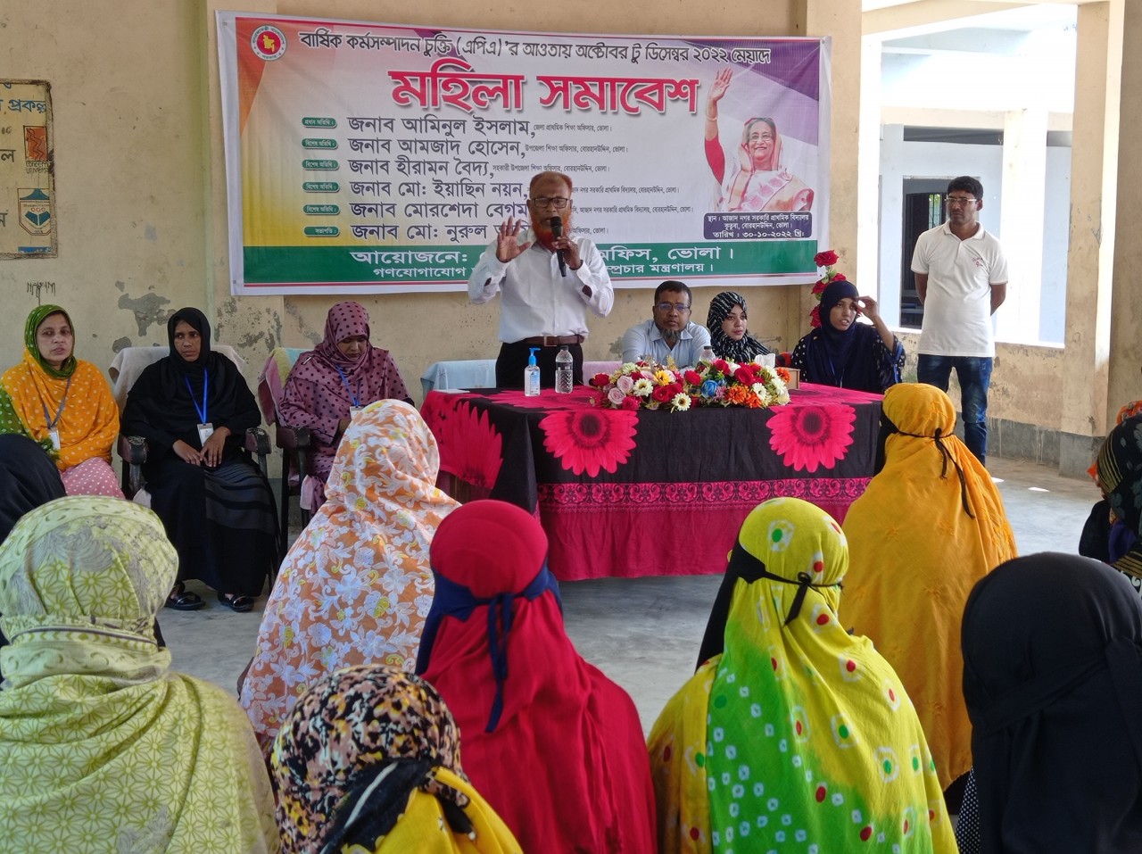 বাংলার কণ্ঠ প্রতিবেদক : ভোলা জেলা তথ্য অফিসের আয়োজনে বার্ষিক কর্ম সম্পাদন চুক্তি (এপিএ ) এর আওতায় বোরহানউদ্দিন উপজেলার কুতুবা ইউনিয়নের আজাদ নগর সরকারি প্রাথমিক বিদ্যালয়ের হল রুমে মহিলা সমাবেশ অনুষ্ঠিত হয়েছে। রবিবার বিকালে জেলা তথ্য অফিসার মোঃ নুরুল আমিন এর সভাপতিত্বে অনুষ্ঠানে বক্তব্য রাখেন, বোরহানউদ্দিন উপজেলা শিক্ষা অফিসার মোঃ আমজাদ হোসেন, স্কুলের ম্যানেজিং কমিটির সভাপতি মোঃ ইয়াসিন নয়ন, প্রধান শিক্ষিকা মোরশেদা বেগম প্রমুখ। এ সময় বক্তারা , উন্নত রাষ্ট্র ও জাতি গঠন , জনস্বাস্থ্য সুরক্ষা ,টেকসই উন্নয়ন, মাননীয় প্রধানমন্ত্রী শেখ হাসিনার দশটি বিশেষ উদ্যোগ, ব্র্যান্ডিং বিষয়ক বিভিন্ন দিকে নিয়ে আলোচনা করেন। এছাড়াও সরকারের সাফল্য, উন্নয়ন পরিকল্পনা ,তথ্য অধিকার ও নারীর প্রতি সহিংসতা প্রতিরোধ ,মাদক বাল্যবিবাহ প্রতিরোধ ,অপপ্রচার অপরাজনীতি, সাম্প্রদায়িকতা প্রতিরোধ ,করোনা প্রতিরোধ,পরিবেশ সুরক্ষা, বৃক্ষরোপণ , নিরাপদ খাদ্য ,শিশু পুষ্টিসহ বিভিœ বিষয়ে তুলে ধরা হয়।