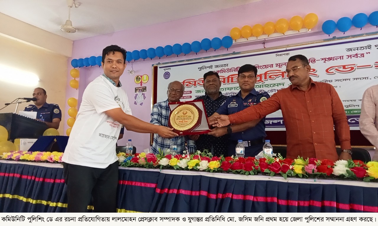 কমিউনিটি পুলিশিং ডে ২০২২ উপলক্ষে ভোলা পুলিশ সুপারের পক্ষ থেকে রচনা প্রতিযোগিতার আহবান করা হয়। এতে ক, খ ও গ বিভাগে ১জন করে ৩জনকে সম্মাননা জানানো হয়। ‘গ’ বিভাগে রচনা প্রতিযোগিতায় অংশ নিয়ে প্রথম স্থান অর্জন করে লালমোহন প্রেসক্লাবের সাধারণ সম্পাদক, দৈনিক যুগান্তর ও এশিয়ান টিভির লালমোহন প্রতিনিধি ও মো. জসিম জনি। এ বিভাগের রচনার বিষয়বস্তু ছিল “সামাজিক সমস্যা প্রতিরোধে কমিউনিটি পুলিশের ভূমিকা”
