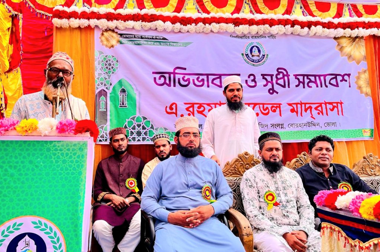 সভায় মাদরদসার সভাপতি মো. আব্দুল হান্নানের সভাপতিত্বে প্রধান অতিথি হিসেবে বক্তব্য রাখেন বোরহানউদ্দিন পৌরসভার ৬নম্বর ওয়ার্ডের কাউন্সিলর মো. জোহেব হাসান। বিশেষ অতিথি হিসেবে বক্তব্য রাখেন মিয়া বাড়ি জামে মসজিদের খতিব মাওলানা নূর হোসেন নুরানী, বায়তুল মামুর মাদরাসার মোহতামিম মাওলানা ইউছুফ হোসেন মিয়াজি, তানজিমুল মিল্লাত মাদরাসার অধ্যক্ষ মাওলানা রহমত উল্লাহ, প্রথম আলো জেলা প্রতিনিধি নেয়ামতউল্যাহ।