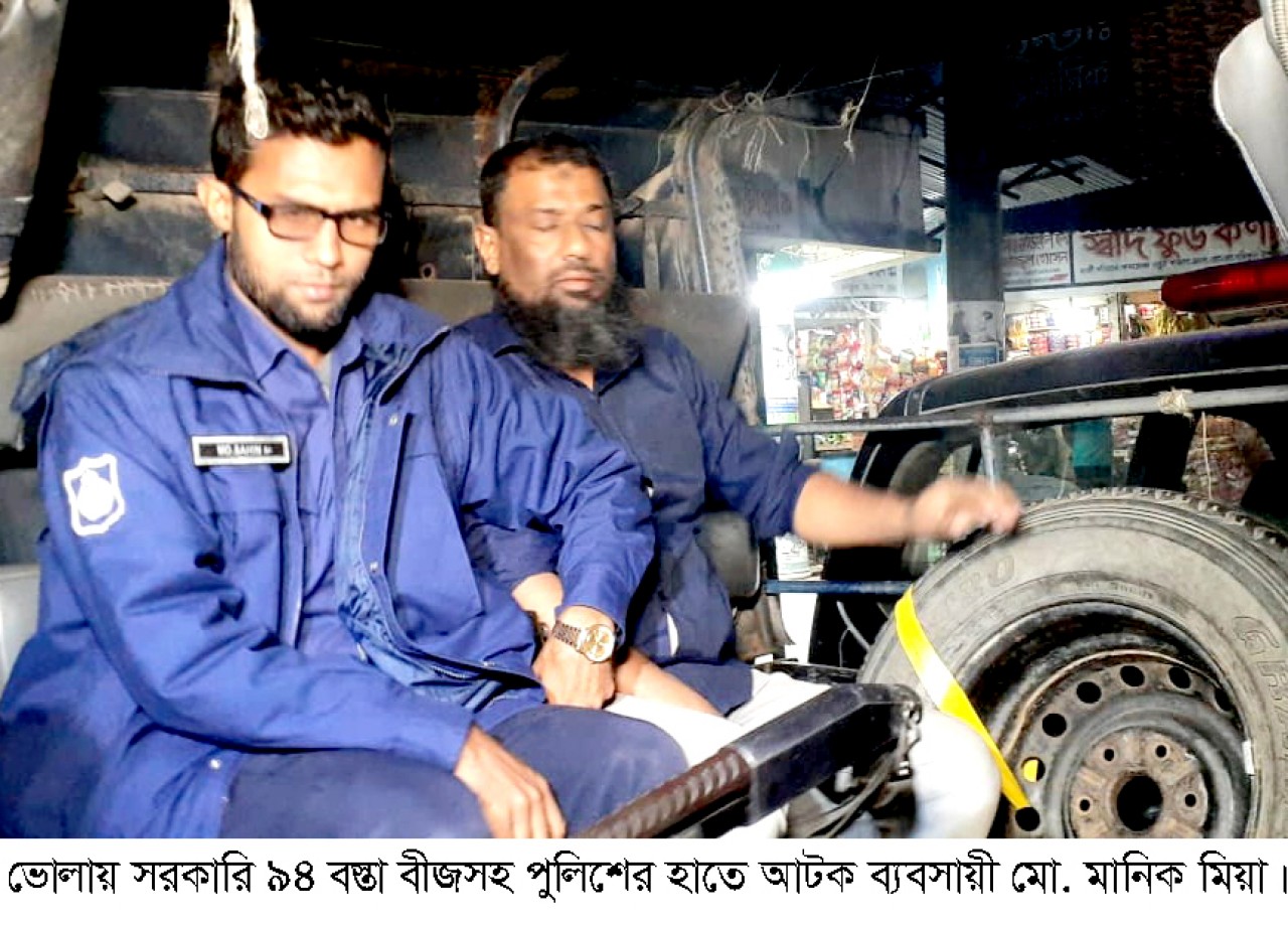 পুলিশ ও স্থানীয় সূত্রে জানা গেছে, বৃহস্পতিবার রাতে ভোলা শহরের নতুন বাজারে মেসার্স মানিক ট্রেডার্সে বাংলাদেশ কৃষি উন্নয়ন কর্পোরেশনের সীল দেয়া বস্তা ভর্তি গম, ধান ও আলু বীজ বিক্রি করছিলেন। এ সময় স্থানীয়রা দোকানের মালিক মানিককে সরকারি বীজ কোথায় পেয়েছেন জানতে চাইলে সে সঠিক উত্তর দিতে পারেনি। পরে বিষয়টি পুলিশকে জানালে সদর মডেল থানার পুলিশ রাত ৮ টার দিকে গিয়ে মোট ৯৪ বস্তা সরকারি বীজসহ দোকানের তাকে আটক করে থানায় নিয়ে যায়।