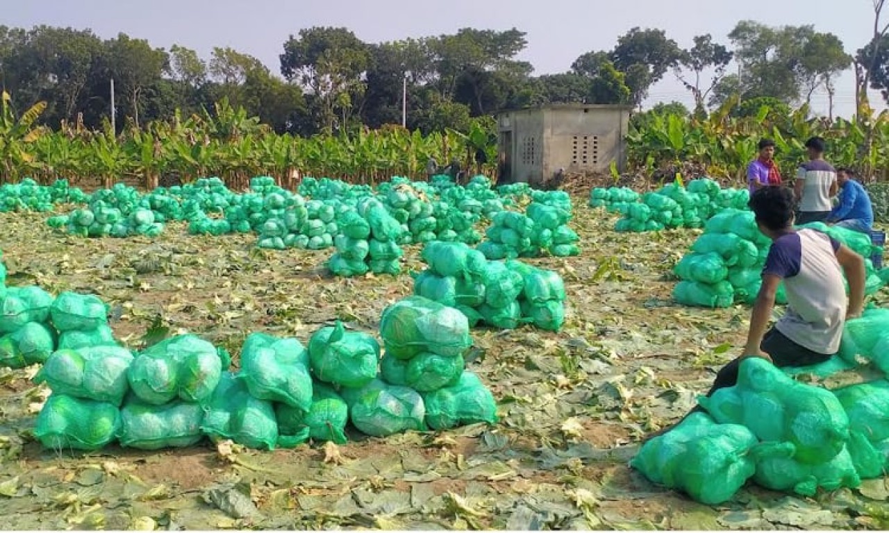 জেলা কৃষি অফিস সূত্রে জানা গেছে, জেলাতে ১২শ’ হেক্টর জমিতে পাতাকপি চাষ করেছেন কৃষকরা। সাধারণত শীতের মধ্যেই পাতাকপি চাষ ও হারভেস্টিং শেষ হয়ে যায়। চলতি মৌসুমে চারটি দেশ ১ হাজার ৫’শ টন বাঁধাকপির নেয়ার চাহিদা দিয়েছে রপ্তানিকারক প্রতিষ্ঠানকে। সে মোতাবেক সরবরাহ করা হবে সিঙ্গাপুর, মালয়েশিয়া ভিয়েতনাম ও ইন্দোনেশিয়ায়। এখন কৃষকদের কাছ থেকে কপিগুলো সংগ্রহ করছেন রপ্তানীকারকরা।