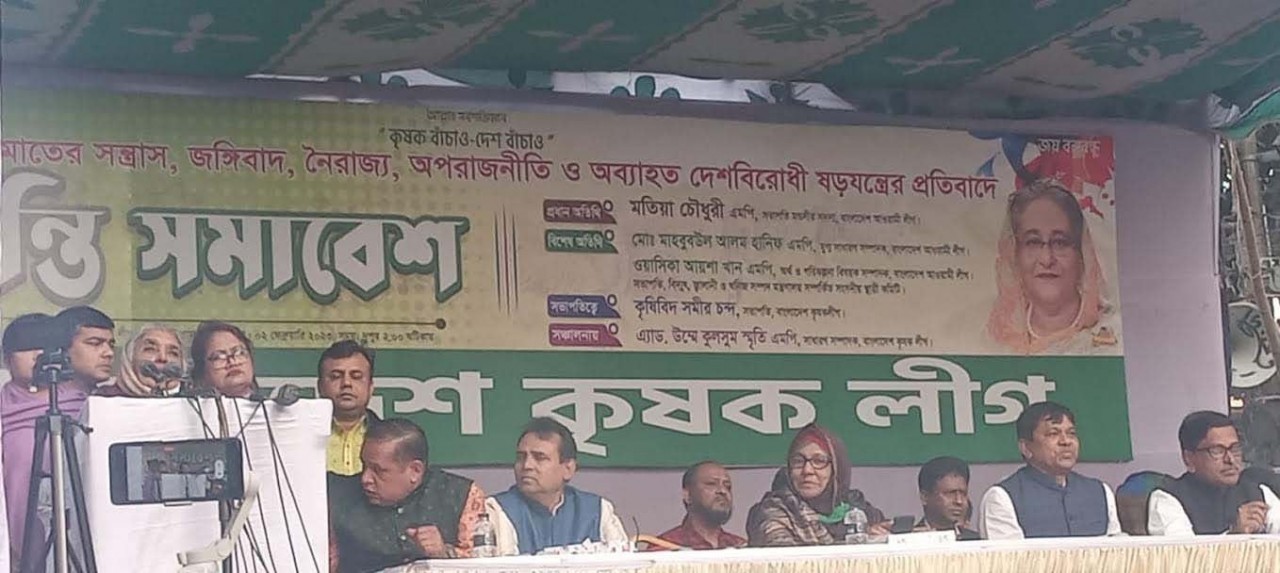 মতিয়া চৌধুরী আজ বৃহস্পতিবার বিকেলে বঙ্গবন্ধু এভিনিউস্থ আওয়ামী লীগের কেন্দ্রীয় কার্যালয়ের সামনে বিএনপি-জামায়াতের সন্ত্রাস, নৈরাজ্য ও ধ্বংসাত্মক কার্যকলাপের প্রতিবাদে বাংলাদেশ কৃষক লীগ আয়োজিত সমাবেশে এসব কথা বলেন।