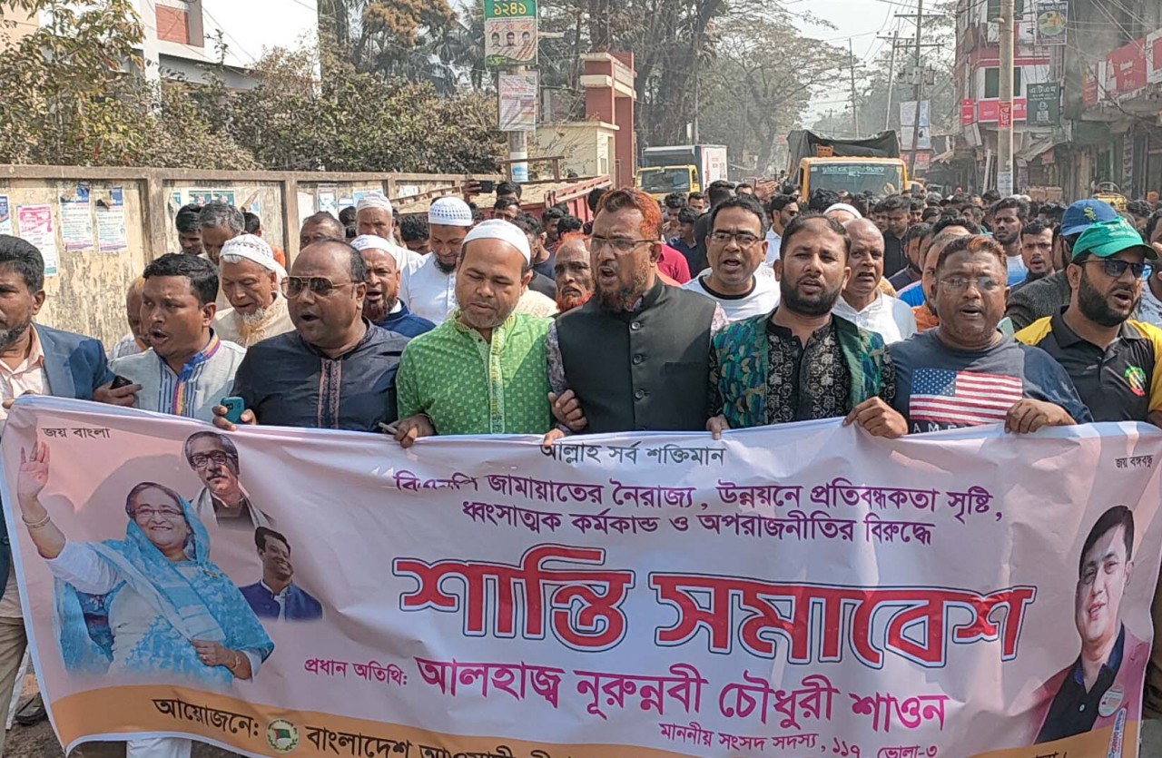 লালমোহন প্রতিনিধি: ভোলার লালমোহনে আওয়ামী লীগের শান্তি সমাবেশে ভোলা-৩ আসনের এমপি নূরুন্নবী চৌধুরী শাওন বলেন, শেখ হাসিনা যতদিন আছেন বিএনপি জামায়াতের স্বপ্ন পূরণ হবে না। এদেশকে অস্থিতিশীল করার চেষ্টা করলে তৃণমূল থেকে প্রতিরোধ করা হবে। আওয়ামী লীগের নেতৃত্বে সারাদেশে গণজোয়ার সৃস্টি হয়েছে। আজ ইউনিয়ন পর্যায়ে আওয়ামী লীগের নেতা কর্মীরা জেগে উঠেছে। আগামী নির্বাচনে আওয়ামী লীগ আবারো ক্ষমতায় আসবে ইনশাআল্লাহ। শনিবার দেশব্যাপি বিএনপি জামায়াতের নৈরাজ্য, উন্নয়নে প্রতিবন্ধকতা সৃস্টি, ধ্বংসাত্মক কর্মকান্ড ও অপরাজনীতির বিরুদ্ধে শান্তি সমাবেশে ভার্চুয়ালি প্রধান অতিথির বক্তব্য রাখেন এমপি শাওন। লালমোহন পৌরসভা আওয়ামী লীগ ও সকল ইউনিয়ন আওয়ামী লীগের উদ্যোগে এ কর্মসূচি পালিত হয়। এতে স্ব স্ব ইউনিয়ন আওয়ামী লীগের সভাপতি, সাধারণ সম্পাদক, ইউপি চেয়ারম্যান ও বিভিন্ন অঙ্গ সংগঠনের নেতা-কর্মীরা উপস্থিত ছিলেন।