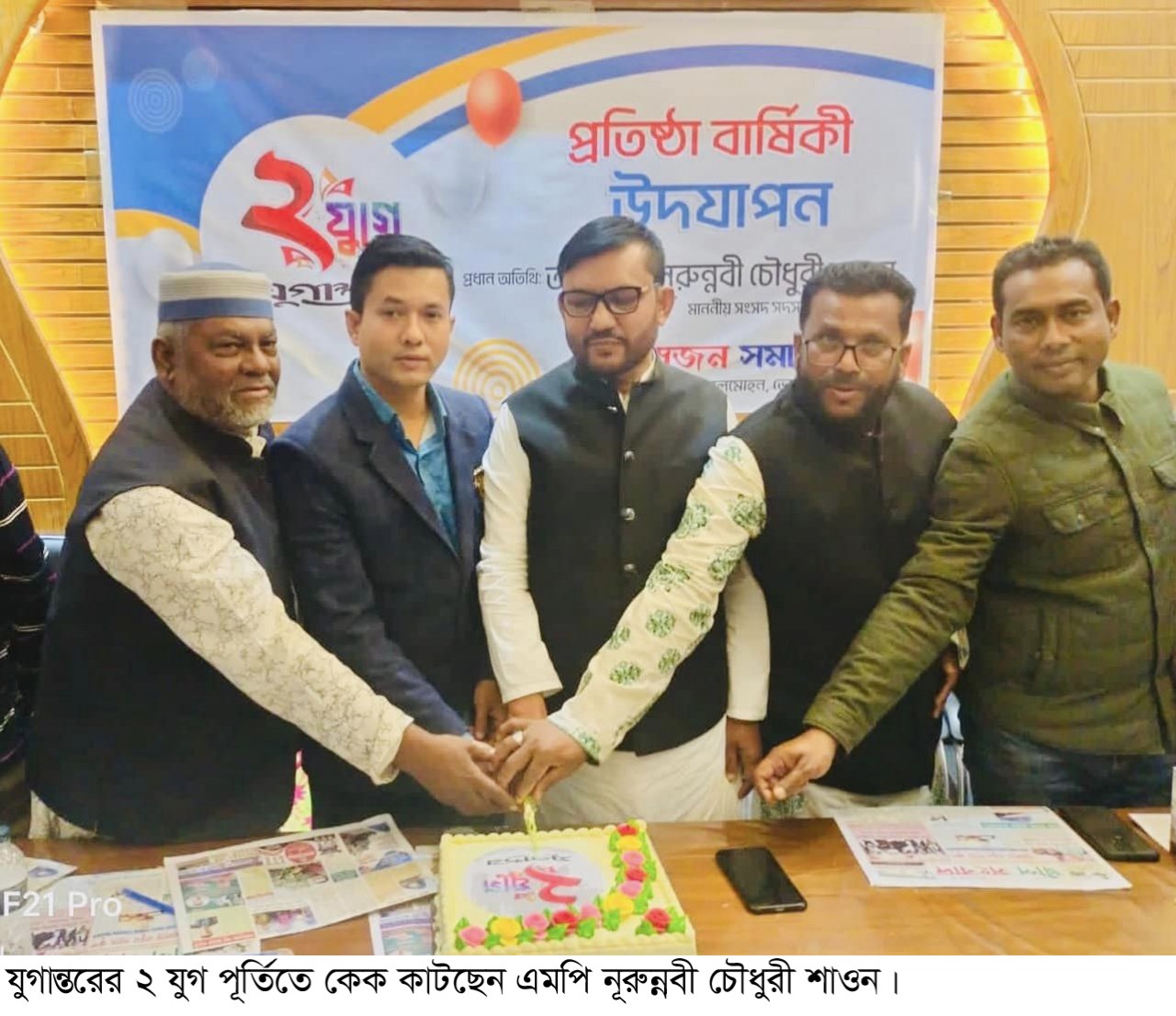 বুধবার ভোলার লালমোহনে স্বজন সমাবেশ ও লালমোহন প্রতিনিধি মো. জসিম জনির আয়োজনে যুগান্তর দুই যুগে পদার্পনে প্রতিষ্ঠাবার্ষিকী উপলক্ষে কেক কাটা ও আলোচনা সভায় প্রধান অতিথির বক্তব্য রাখেন এমপি নূরুন্নবী চৌধুরী শাওন। লালমোহন প্রেসক্লাবে উক্ত অনুষ্ঠানে সভাপতিত্ব করেন প্রেসক্লাব সভাপতি মো. রুহুল আমিন। এসময় বক্তব্য রাখেন উপজেলা পরিষদের চেয়ারম্যান বীর মুক্তিযোদ্ধা গিয়াস উদ্দিন আহমেদ, লালমোহন সার্কেলের অতিরিক্ত পুলিশ সুপার মো. জহিরুল ইসলাম, উপজেলা আওয়ামী লীগের সাধারণ সম্পাদক ফখরুল আলম হাওলাদার, লালমোহন থানার পুলিশ পরিদর্শক (তদন্ত) এনায়েত হোসেন, পৌরসভা আওয়ামী লীগের যুগ্ম আহবায়ক মনজু তালুকদার, পৌরসভা কাউন্সিলর ঈমাম হোসেন, যুগান্তরের তজুমদ্দিন উপজেলা প্রতিনিধি শাহিন আলম মাকসুদ প্রমূখ।