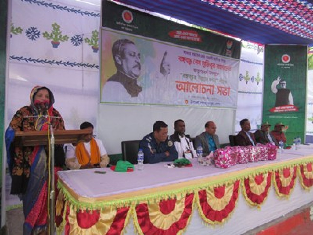 র্যালী শেষে “বঙ্গবন্ধুর উন্নয়ন দর্শন শীর্ষক” আলোচনা সভা অনুষ্ঠিত হয়। সভার সভাপতিত্ব করেন উপজেলা নির্বাহী অফিসার বিপুল চন্দ্র দাস। হাজির হাট মডেল সরকারী মাধ্যমিক বিদ্যালয়ের প্রধান শিক্ষক মোঃ আলমগীর হোসেন সঞ্চালনায় প্রধান অতিথি হিসেবে উপস্থিত ছিলেন উপজেলা পরিষদ চেয়ারম্যান শেলিনা আকতার চৌধুরী। বিশেষ অতিথি হিসেবে উপস্থিত ছিলেন মনপুরা সরকারী ডিগ্রী কলেজ অধ্যক্ষ মোঃ জাহাঙ্গীর আলম,উপজেলা আ’লীগ সাধারন সম্পাদক মোঃ জাকির হোসেন,উপজেলা স্বাস্থ্যকর্মকর্তা ডা.মোঃ মাহমুদুর রশিদ।