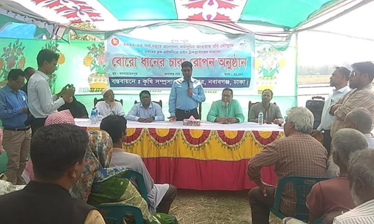 ঢাকার নবাবগঞ্জ উপজেলায় ২০২২-২৩ অর্থ বছরে প্রণোদনা কর্মসূচির আওতায় রবি মৌসুমে বোরো ধানের চারা রোপণ অনুষ্ঠান করা হয়েছে। সোমবার দুপুরে শোল্লা ইউনিয়নের উলাইল চক এলাকায় এ অনুষ্ঠান করা হয়।