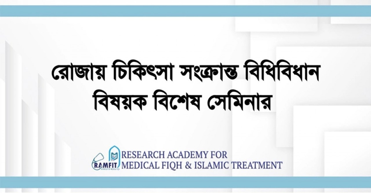 ঢাকায় প্রথমবারের মত অনুষ্ঠিত হতে যাচ্ছে রোজায় চিকিৎসা সংক্রান্ত বিধিবিধান বিষয়ক বিশেষ সেমিনার। আগামী ৩ মার্চ ২০২৩ তারিখ, শুক্রবার সকাল ৯.৩০ টায় মগবাজার কনভেনশন হলে প্রথমবারের মতো বায়োমেডিকেল এথিক্স এর উপর অফলাইন সেমিনার অনুষ্ঠিত হবে। এবারের সেমিনারের আলোচ্য বিষয় রোজা সংক্রান্ত ইসলামিক বিধিনিষেধ।