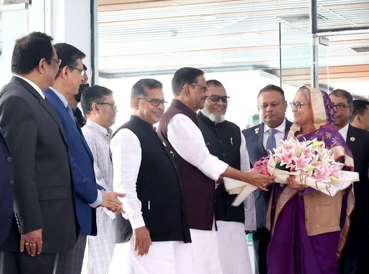 প্রধানমন্ত্রী ও তাঁর সফরসঙ্গীদের বহনকারী বিমান বাংলাদেশ এয়ারলাইন্সের একটি বিশেষ ভিভিআইপি ফ্লাইট (বিজি-১২৬) স্থানীয় সময় বিকেল সাড়ে ৩টার দিকে ঢাকার হযরত শাহজালাল আন্তর্জাতিক বিমানবন্দরে অবতরণ করে।