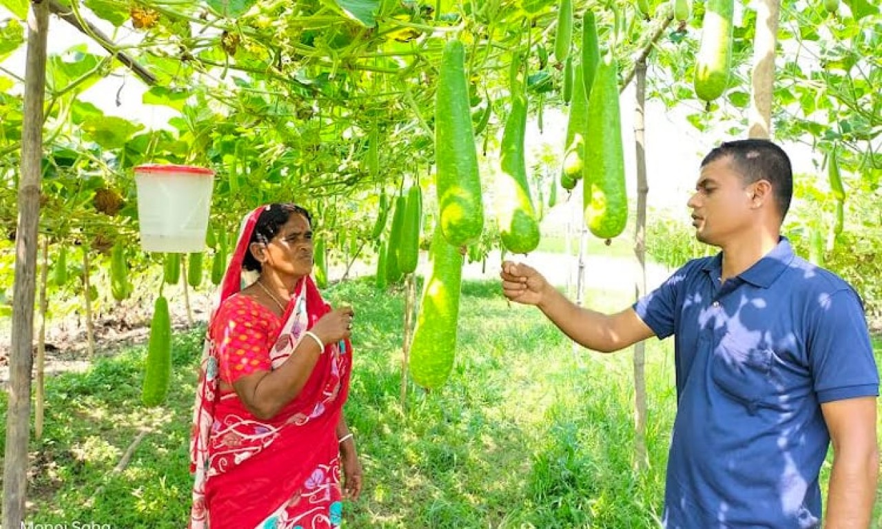 কৃষি সম্প্রসারণ অধিদপ্তরের পরিবেশ বান্ধব কৌশলের মাধ্যমে নিরাপদ ফসল উৎপাদন প্রকল্পের আওতায় ২০ শতাংশ জমিতে কল্পনা পান্ডে জৈব কৃষি ও জৈব বালাই দমন ব্যবস্থাপনা প্রদর্শনী প্লাট করেছেন। এখানে কৃষি সম্প্রসারণ অধিদপ্তরের গোপালগঞ্জ সদর উপজেলা কৃষি অফিসের পরামর্শে মাটির সাথে কচুরিপানা পচা অংশ মিশিয়ে গত বছরের ২৫ ডিসেম্বর লাউ গাছ রোপণ করেন। লাউ গাছ রোপণের সময় জৈব ও রাসায়নিক সার সুষমভাবে প্রয়োগ করেন। মাছি পোকা দমনে সেক্স ফেরমেন ফাঁদ টাঙিয়েছেন। লাউ আবাদের ৬২ দিনের মাথায় তিনি লাউয়ের বাম্পার ফলন পেয়েছেন। এখন লাউ বিক্রির টাকা ঘরে তুলছেন।