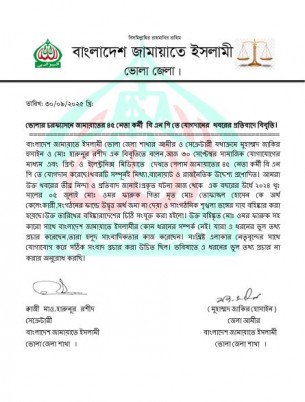 ভোলায় জামায়াতে ইসলামীর ৫ দফা দাবীতে স্মারকলিপি প্রদান