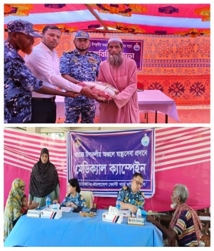 বোরহানউদ্দিনে কোস্ট গার্ডের মেডিকেল ক্যাম্প ও ত্রাণ বিতরণ