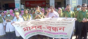 ভোলায় ১০দফা দাবিতে নার্সদের মানববন্ধন