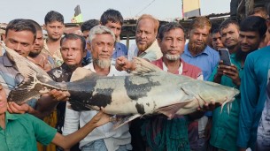 ভোলার মেঘনায় ধরা পড়লো ২১ কেজি ওজনের নিষিদ্ধ বাঘাইর মাছ