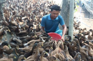 শীতকে সামনে রেখে হাঁস পালনে ব্যস্ত ভোলার মেঘনা পাড়ের যুবক মিজান