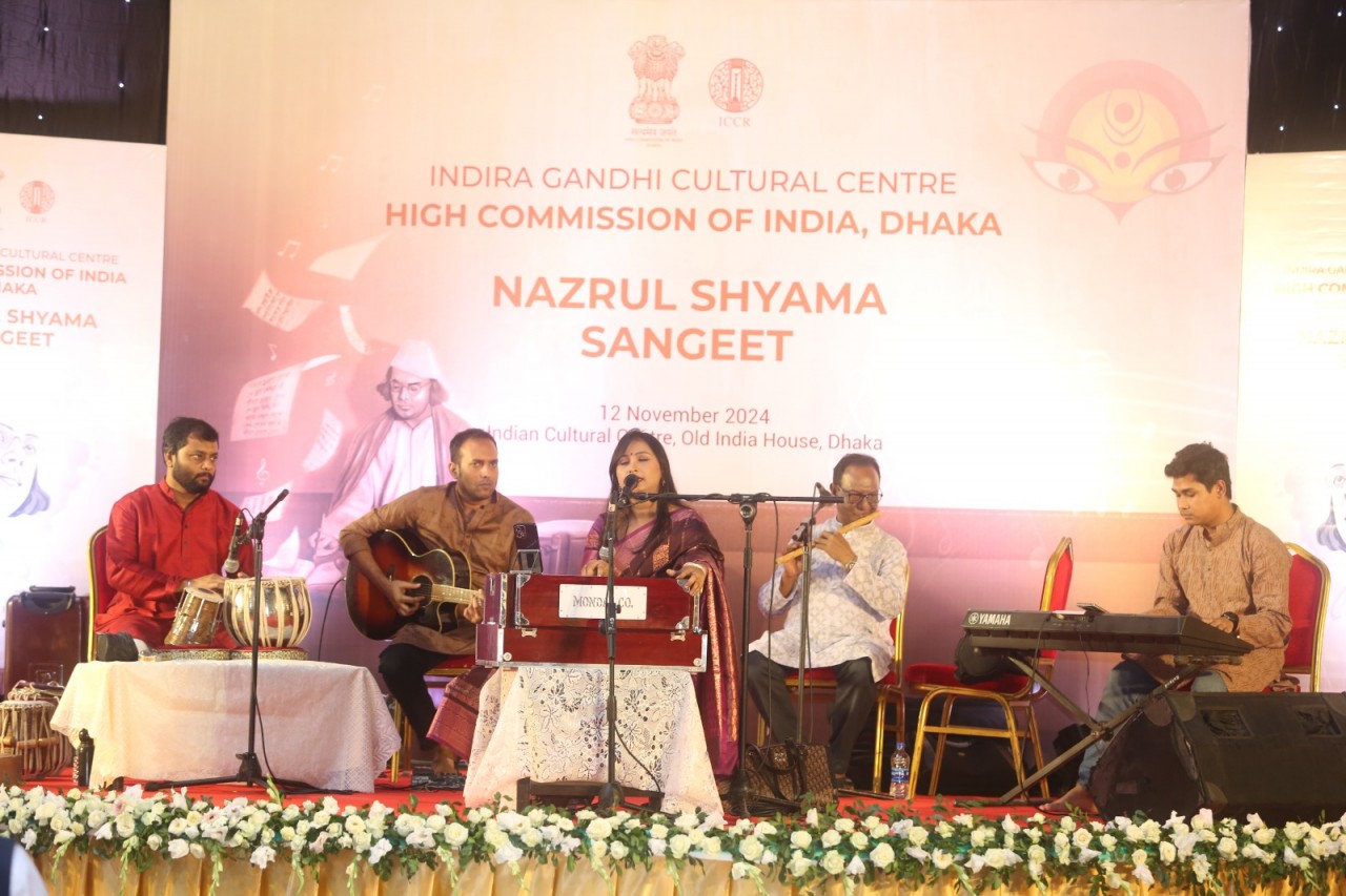 বাংলার কণ্ঠ ডেস্ক: ভারতীয় হাই কমিশনের ইন্দিরা গান্ধী সাংস্কৃতিক কেন্দ্র (আইজিসিসি) কর্তৃক ঢাকার ভারতীয় সাংস্কৃতিক কেন্দ্রে মঙ্গলবার বিকেলে (১২ নভেম্বর, ২০২৪) কাজী নজরুল ইসলামের শ্যামাসঙ্গীতের একটি সংগীত সন্ধ্যার আয়োজন করা হয়।