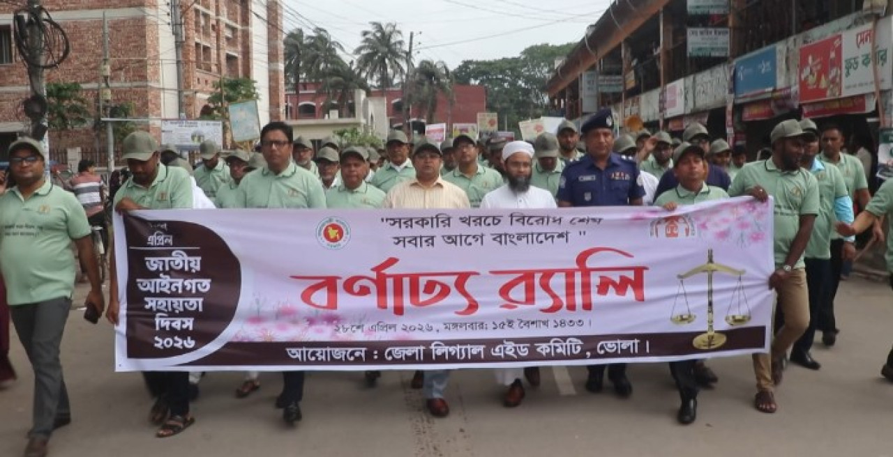 বাংলার কণ্ঠ প্রতিবেদক : ‘সরকারি খরচে বিরোধ নিষ্পত্তি, সবার আগে বাংলাদেশ’এই প্রতিপাদ্য নিয়ে নানান আয়োজনের মধ্য দিয়ে ভোলায় জাতীয় আইনগত সহায়তা দিবস পালন করা হয়েছে।